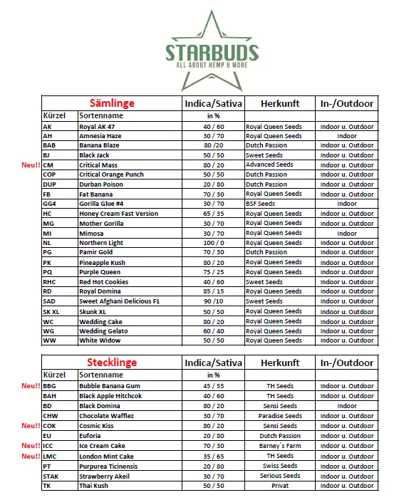 Weil wir uns bemühen immer wieder frische Genetiken anzubieten, ändert sich auch manchmal unsere Sortenliste.